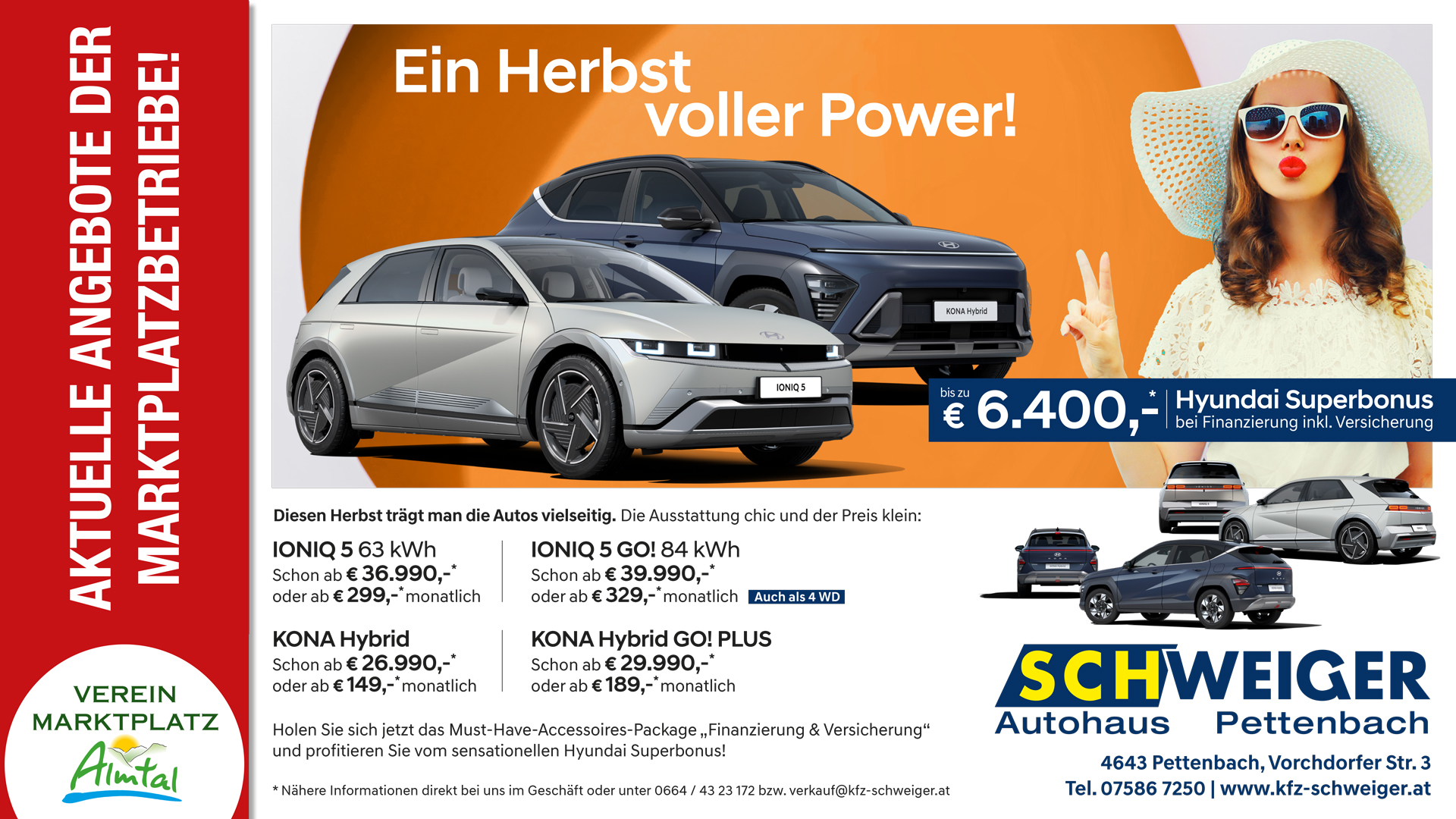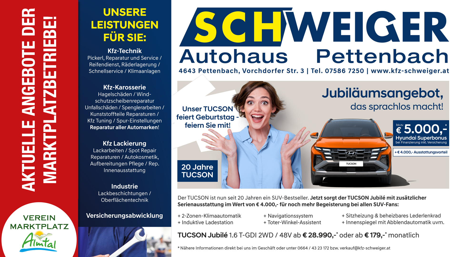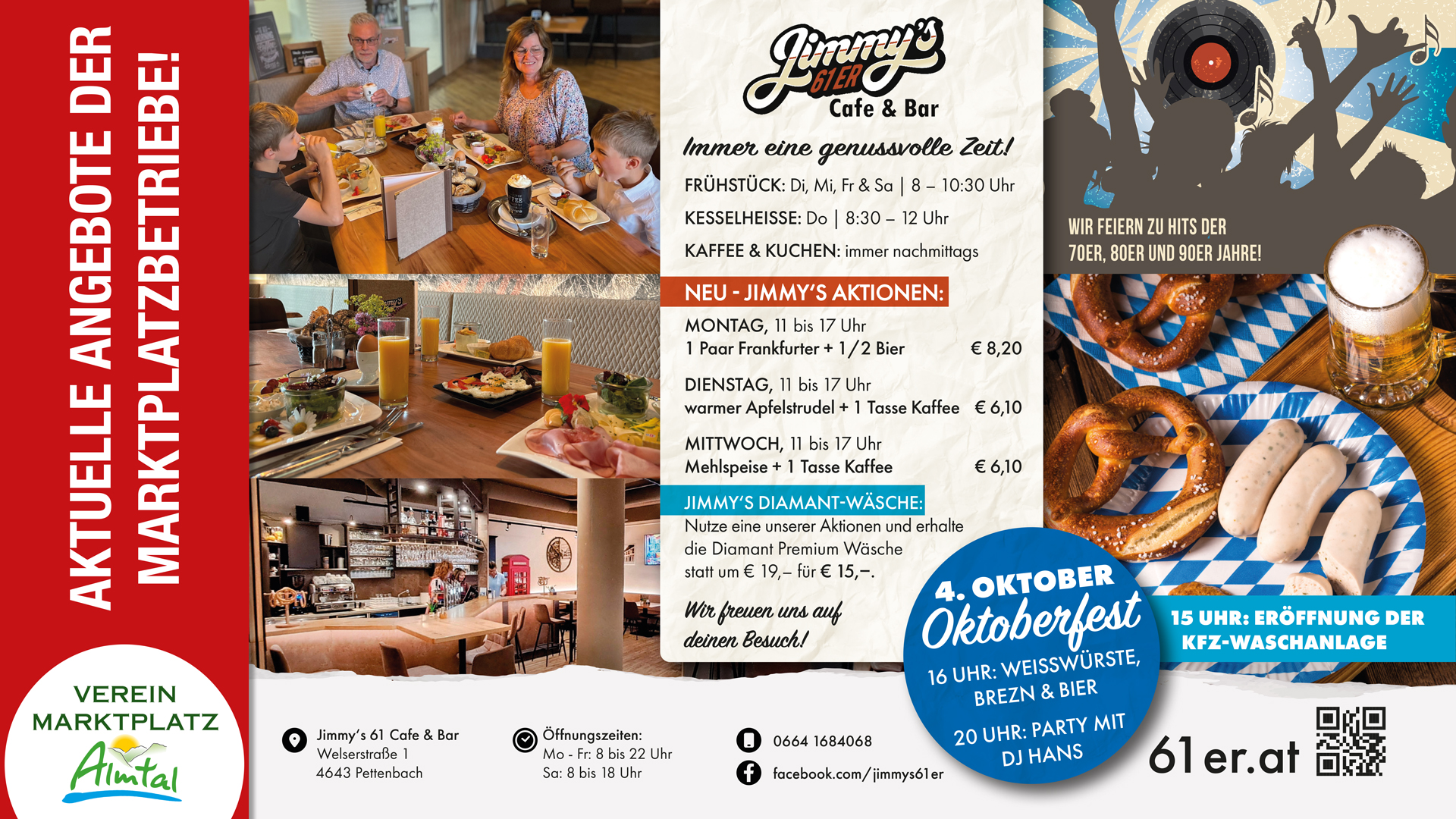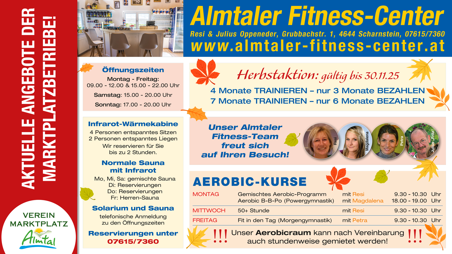 AKTUELLE ANGEBOTE DER ALMTALER BETRIEBE KFZ SCHWEIGER: JIMMY'S 61er CAFE & BAR: WELLHEIM: OPTIK AKUSTIK BAUER: ALMTALER-FITNESS-CENTER: DESIGNKERAMIK: