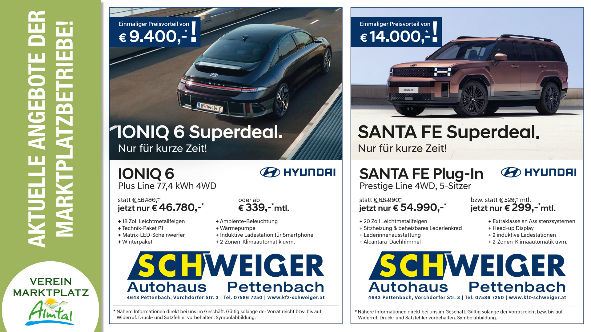 AKTUELLE ANGEBOTE DER ALMTALER BETRIEBE AUTOHAUS KRONBERGER & AUTOHAUS KLAUSHOFER: OPTIK AKUSTIK BAUER: DESIGNKERAMIK: KFZ SCHWEIGER: JIMMYS 61er: WELLHEIM: