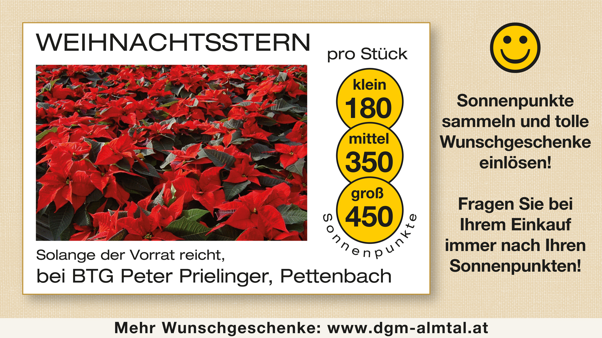 Bei einem Einzelkauf über Euro 2.500,- gibt es maximal 500 Sonnenpunkte. Fragen Sie bei Ihrem Einkauf immer nach Ihren Sonnenpunkten!