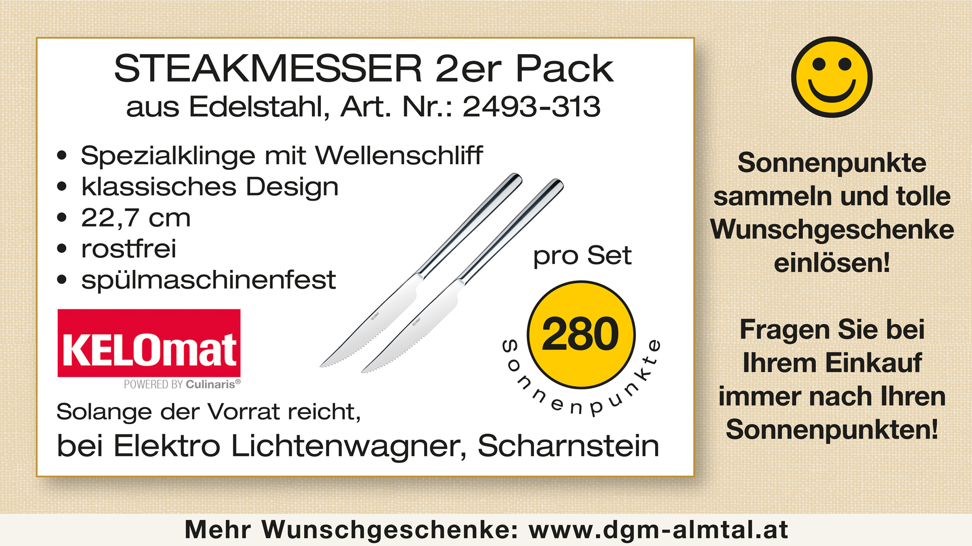 Einfache Spielregeln: Je Euro 5,- Rechnungsbetrag gibt es für Sie 1 Sonnenpunkt, daher bei einem Einkauf von Euro 40,- erhalten Sie 8 Sonnenpunkte! Kleben Sie die gesammelten Punkte in den erhältlichen Sammelpass und lösen Sie mit der genügenden Sonnenpunkte-Anzahl Ihre Wunschgeschenke ein!